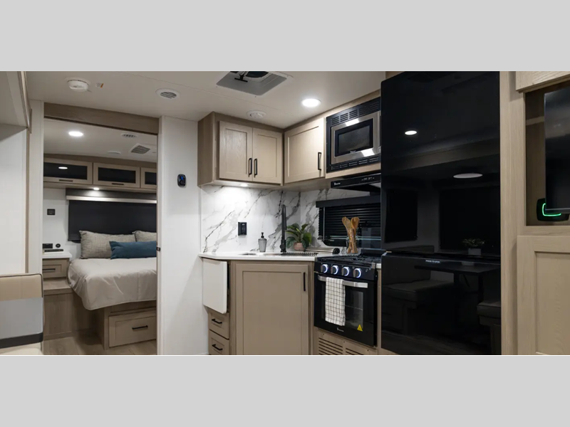 Each is built with 6-sided aluminum cage construction, a fully laminated walkable roof, and aluminum truss roof bracing for added support. You will love the standard features such as, a 200W solar panel, a Key-Alike lock system, and a Winegard Air 360+ prepped for Wi-Fi. The Coast to Coast Package includes amenities that will make you feel right at home including, solid surface kitchen countertops, roller shades, and soft close roller bearing drawers.